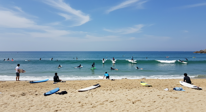 겨울철 윈터서핑 명소로도 유명. - 장점: 넓은 해변, 서핑 입문 강습 활발
