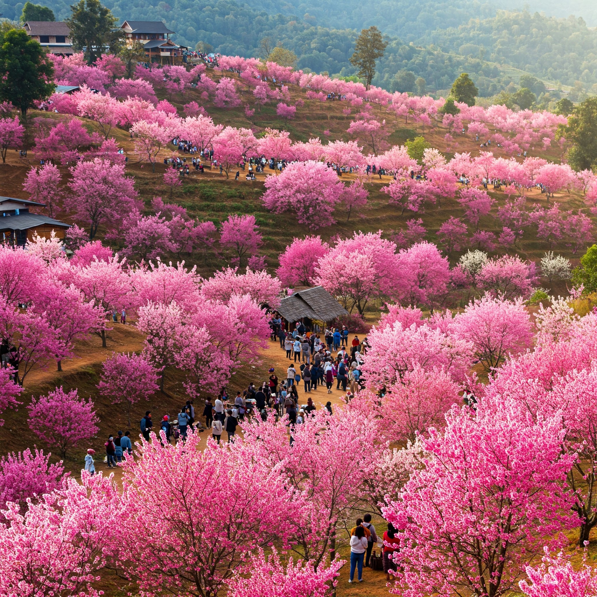 - 태국 치앙마이 도이 매 파둥: 매년 2월, 태국 북부 치앙마이의 도이 매 파둥에서는 '수악 부악 핫'이라는 벚꽃 축제가 열립니다. 핑크빛 벚꽃이 산을 뒤덮는 장관은 일본의 벚꽃과는 또 다른 매력을 선사합니다. 특히, 이곳 벚꽃은 히말라야 벚꽃으로, 일반 벚꽃보다 더욱 진한 핑크색을 자랑합니다.