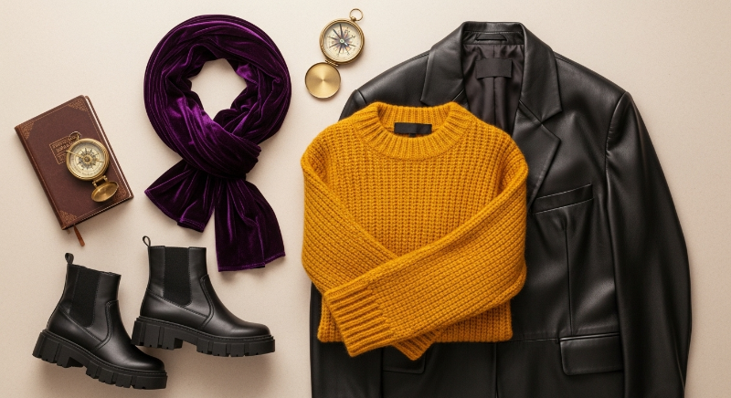 올 가을 메인 컬러는 딥 퍼플과 톤다운된 머스터드 옐로우의 조합입니다. 이 두 색상은 서로 대비되면서도 세련된 조화를 이루어 독창적인 룩을 완성해 줄 거예요.