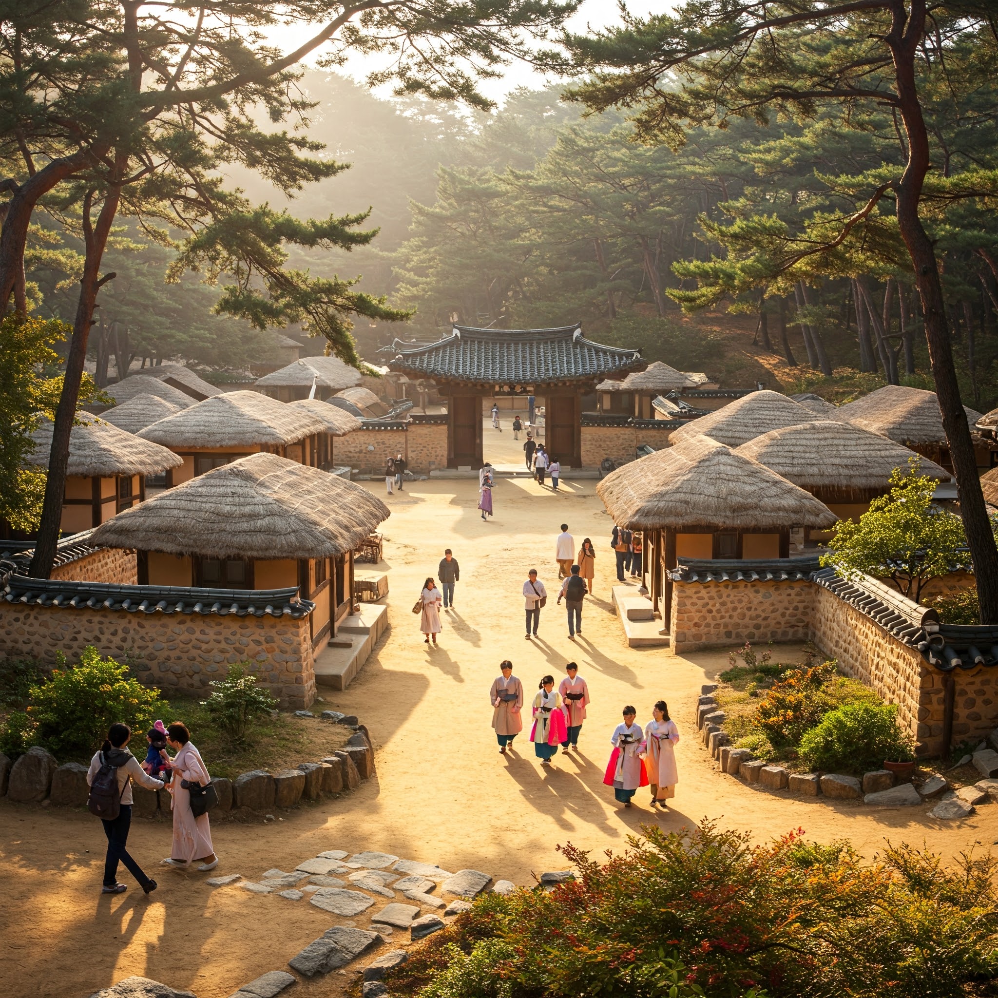- 이곳은요: 조선 시대의 마을을 그대로 재현해 놓은 야외 민속 박물관입니다. 전통 가옥과 생활 문화를 직접 보고 체험할 수 있으며, 실감 나는 캐릭터 연기자(알바)들의 활약과 흥미로운 전통 공연(마상무예, 전통혼례 등)은 민속촌 방문의 백미! 사극 촬영지로도 유명하죠.