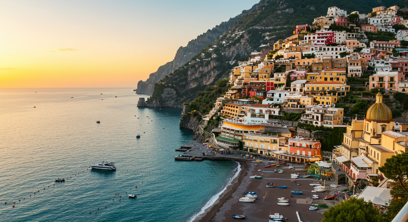 - 포지타노: 해변에서 바라보는 절벽 마을 전경 (가장 유명한 뷰!), 마리나 그란데 해변(Marina Grande), 일몰 시간 보트 투어 (황홀 그 자체! 🌅)