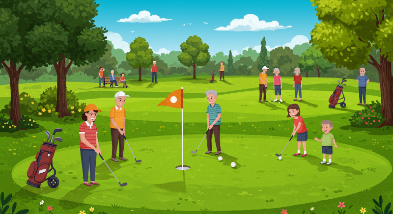 A: 파크골프는 공원(Park)에서 즐기는 골프(Golf)로, 한 개의 클럽과 공만 있으면 됩니다. 장비와 규칙이 간단해서 초보자도 쉽게 즐길 수 있어요.