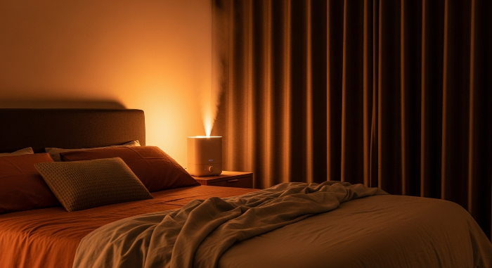 겨울철 수면의 최대 적은 어쩌면 추위보다 '건조함'일지 모릅니다. 코 점막이 마르면 코골이가 심해지거나 구강 호흡을 하게 되어 수면의 질이 뚝 떨어지거든요. 가습기를 활용해 습도를 50~60%로 유지해 주세요. 습도계가 없다면 젖은 수건을 머리맡에 널어두는 것도 고전적이지만 확실한 방법입니다.